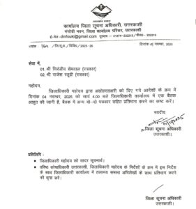 जिला सूचना अधिकारी कार्यालय द्वारा जारी पत्रांक संख्या 164/जि.सू.अ./विविध/2025-26 के अनुसार, बैठक में पत्रकार चिरंजीव सेमवाल और राजेश रतूड़ी सहित अन्य दो-दो पत्रकारों को आमंत्रित किया गया है। पत्र में उल्लेख है कि यह बैठक जिलाधिकारी के आदेशों के क्रम में बुलाई जा रही है और इसमें संबंधित सभी पक्षों को उपस्थित होकर अपनी बात रखने का अवसर दिया जाएगा।