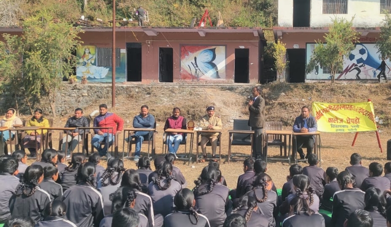 थाना थराली के तत्वावधान में शहीद भवानी दत्त स्मारक इंटर कॉलेज चेपड़ो में नशा मुक्ति, बाल अपराध एवं यौन शिक्षा विषय पर एक जागरूकता संगोष्ठी का आयोजन किया गया। संगोष्ठी में थानाध्यक्ष थराली विनोद कुमार चौरसिया ने छात्र छात्राओ को नशे विरुद्ध जागरूक रहने हेतु प्रोत्साहित किया, उन्होंने छात्र -छात्राओ को आज के समाज मे हो रही घटनाओ से सजग रहने , सोसियल मीडिया का दुरूपयोग न करने , योन शिक्षा , बाल अधिकार, बच्चों के कर्तव्य व अधिकारों की वृस्तित जानकारी, व कानूनी रूप से बाल अपराधों में सजा के प्रावधानों की जानकारी दी। इस मौके पर प्रधानाचार्य दिग्पाल सिंह गड़िया ने छात्र छात्राओ को सोसोयल मीडिया का सही उपयोग करने ,हमेशा सकारात्मक सोच के साथ आगे बढ़ने व अपने भविष्य की सही राह चुनने की अपील की।