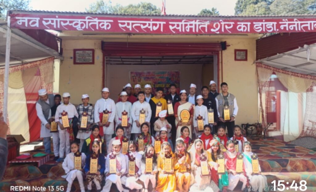 नैनीताल। सरोवर नगरी नैनीताल व उसके आसपास इन दिनों तमाम स्थानों में होली की धूम मची हुई है। यहाँ नव सांस्कृतिक सत्संग समिति शेर का डांडा रामलीला मैदान में हर वर्ष की भांति भी इस वर्ष स्कूली बच्चों की होली प्रतियोगिता आयोजित की गई साथ ही महिलाओं की भी होली प्रतियोगिता आयोजित की गई। होली प्रतियोगिता का शुभारंभ नगर पालिका के सभासद जितेन्द्र कुमार पांडे, जीनू, एवं रमेश प्रसाद समेत रामलीला के बरिष्ठ पदाधिकारी कुँवर सिंह रावत व समिती सदस्यों ने सयुंक्त रूप से दीप प्रज्वलित कर उद्घाटन किया। इस अवसर पर युगमंच के बच्चों द्वारा होली रे रसिया आज बिरज में होली रे रसिया वही राधा चिल्ड्रन अकादमी स्कूल के बच्चों ने मनमोहन नृत्य प्रस्तुत कर वाहवाही बटोरी ,सैनिक स्कूल के U छात्रों ने ढोलक की थाप पर केले बाँधी चिर ओ रघुनंदन राजा गणपति बाधि चिर ओ रघुनंदन राजा सी आर एस टी इंटर कॉलेज के छात्रों द्वारा हारमोनियम की धुन में कोन लला घर आये कुँवर कन्हैया इसके अलावा महिलाओं की टीम ने भी होली मंच पर शमा बाँधी।जिस पर जय हनुमंते संस्था महिलाओं द्वारा काहे की तोरी बनी मुरलियाँ, शेर का डांडा महिलाओं ने भवानी माता का ध्यान कर मंदिर के पट खोले रे भवानी अंगना में डाले रे गुलाल, रिद्धि सिद्धि ग्रुप द्वारा वो भी सिर पर हरि में भी हरि, वैष्णवी ग्रुप महिलाओं द्वारा होली गायन कर जमकर ठुमके लगाए भवानी में चढ़त गुलाल हा थाल सजाके इसके बाद प्रेरणा महिला समिति जो हल्द्वानी उत्कृष्ट सामुहिक गायन में पहला स्थान प्राप्त किया उनकी टीम ने होली गायन में चार चांद लगाकर दर्शकों को बैठने के साथ साथ नाचने के लिए मजबूर कर दिया। कार्यक्रम का संचालन उमेश सनवाल, शिक्षिका दीपा पांडे ने सयुंक्त रूप से किया। इस अवसर पर समिती के तमाम पदाधिकारी मौजूद रहे। सभी होल्यारों को समिती द्वारा स्मृति चिन्ह देकर सम्मानित किया गया।